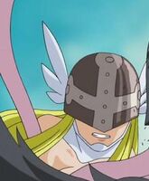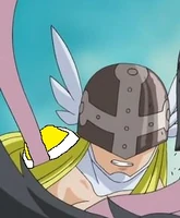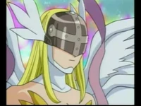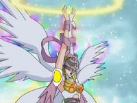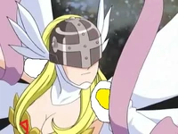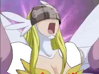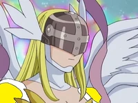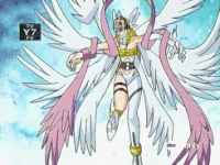 Angewomon is a member of Team Ironhide and the lover of Optimus Prime. At the end of Mervamon and Ponydramon, she becomes his wife.