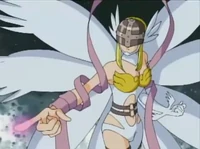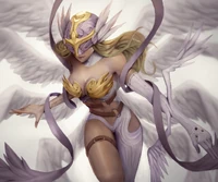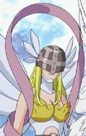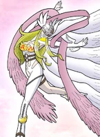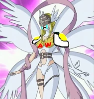 Angewomon (JP: エンジェウーモン) is an Archangel Digimon whose name and design are derived from "Angel Woman". She has the appearance of a beautiful woman. Although she was previously classified as an Angel-type, she was confirmed as an Archangel-type because of the greatness of her abilities.