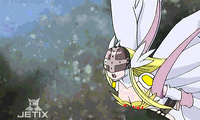 The daughter of MagnaAngemon and Supergirl, Angewomon was sent away from her parents when she was just a baby in order to be safe from the Great Monster War. She was found by a human woman, Lois, who was unable to give birth. For 21 years, as Christine, Angewomon was cared for by Dan and Lois. On her twenty-first birthday, however, her home was attacked and her adoptive parents were killed. Now, as the Angel of Light and Hope and one of the saviors of Disney, Angewomon knows it is all the more essential to save the universe so that others will not be killed as well.