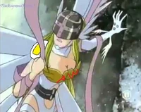 In the original story of Digimon, Angewomon was Kari's Digimon partner and close friend. This is the Angewomon whom Menslady125 hates because of her unforgiving attitude and how she treated Myotismon, who is Menslady's favorite Digimon.