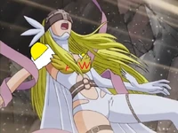 Because of Angewomon's soul and power, she is said to be a being like a goddess of the Digital World.