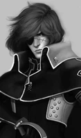 Harlock is the archetypical romantic hero, a space pirate with an individualist philosophy of life. He is as noble as he is taciturn, rebellious, stoically fighting against totalitarian regimes, whether they be earthborn or alien. In his own words, he "fight[s] for no one's sake... only for something deep in [his] heart".