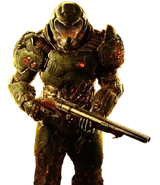 The Doom Slayer (also known by the UAC as DM1-5, DOOM Marine or The Slayer, the Demons of Hell as the Doom Slayer, the Unchained Predator, or the Hell Walker) is the protagonist and playable character in Doom (2016), Quake Champions, and in Doom Eternal and it's two DLCs Ancient Gods part 1 & 2.
