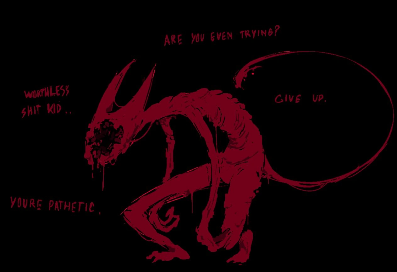 Hatred Is The Final Boss Of Chapter 3 of Block Tales: Sword of Time. It is, As The Name Suggests, It's The Physical Embodiment Of Hatred. It Can Shapeshift into Other People, But it's True Form Looks Like a Devil.(Idk Some Say it looks like a Cat for Some Reason) There Is a lot Of Mystery Surrounding Hatred, What it is, How it Came to Be. All We Know is that, For Some Reason, it's Interested in the Player. After Being "Tamed" You can Fight Him Again in Nirvana, By Simply Saying "I Feel Nothing". He Can Summon Apparitions Which are Representations of the Player.