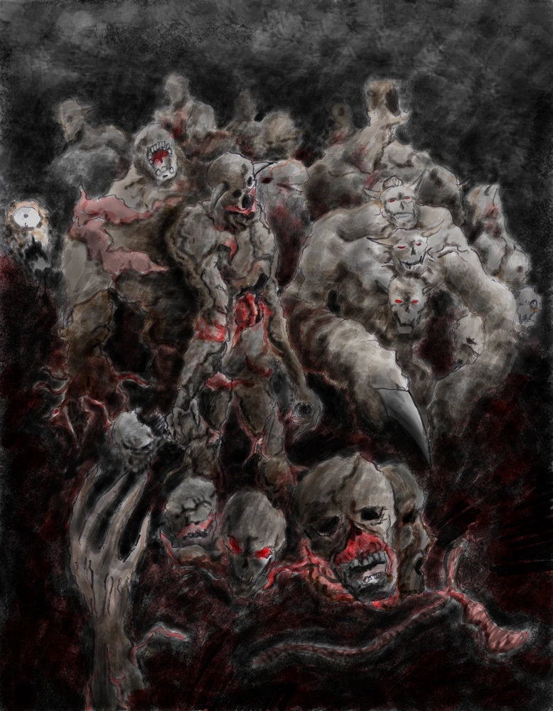 After working with Melancholia, Michael ground his victims' flesh and bones before making them a part of FOLIE, an artificial sea monster made by him and Melancholia. Michael also seized the chance of the World War III and secretly murdered people before faking their death as the result of the KnightWalker Family's war crime. In a time of war, Michael's victims will be hardly noticed. What is more, ALL of the souls of Michael's victims - from his nanny to his latest victim - were all devoured by Michael and becoming a part of him forever. That is how Michael gained infinite power of splitting souls. It also spawned Michael's Legion after Michael's final form broke apart, and those souls were so corrupted that they completely became a part of Michael's puppets and could never go to afterlife for all eternity. What is worse, those corrupted souls went on to corrupt every living things and made them controlled by Michael, resulting many lives being corrupted forever. The terror's impact shall last for more than 5 billions of years and maybe even longer than the Multi-Universe itself.