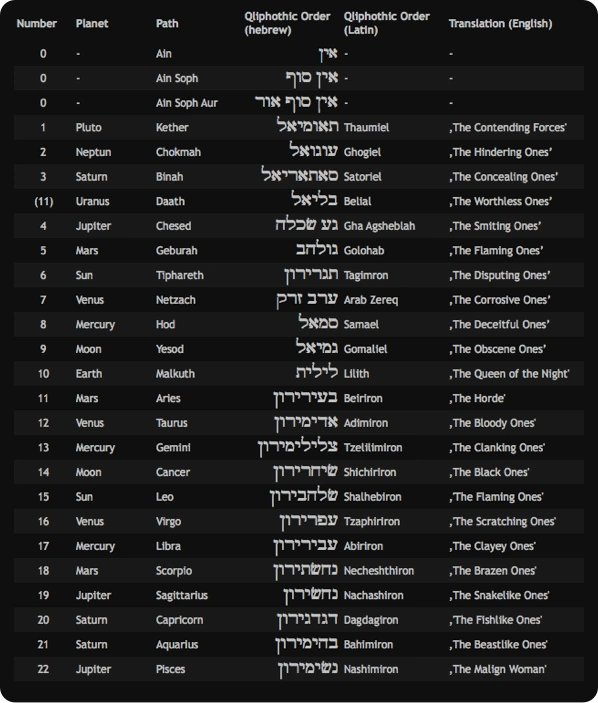 Unholy Numbers & Qliphothic Order[]