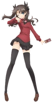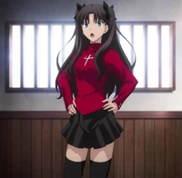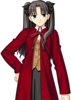 Rin is a perceptive, serious, resourceful and very competitive person. Though she is widely admired at school as a prim and proper honor student, it is a front she puts up in order to prevent others from prying into her life. In private, she is notably loud, shrewd, stingy and bossy, but usually means well for those she cares about. She is known as a model student and idol of her school. Her manner of speech is often hostile and dismissive of other people, but deep down she has a caring, big-sisterly disposition. Her tendency of making trivial mistakes at the worst possible moment is a hereditary curse. Though she really is a lot nicer than she seems, she claims to always make her decisions based on cold, rational logic in the end. In her own words, it's "not a very cute personality". In fact, her choice in personal clothes is probably an overreaction to that. Despite claiming that she would do anything in order to win the Holy Grail War, no matter how underhanded, she has a deeply rooted sense of honor, seen refusing to dispose of Shirou despite numerous easy chances of doing so, simply because she owes him and deem disposing of him without clearing her debts to be cheap.