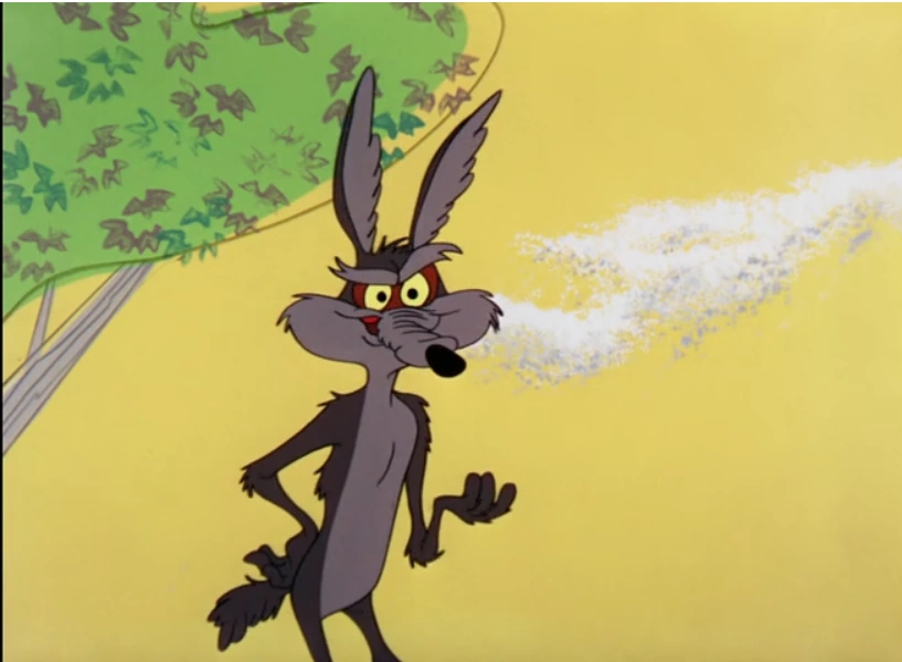 Wile E. Coyote is a major antagonist of the Looney Tunes franchise. He is an animated cartoon character, created by Chuck Jones for the Looney Tunes and Merrie Melodies cartoons. He debuted in the 1949 cartoon "Fast & Furry-ous", alongside his most common enemy, the Road Runner. He most commonly tries to catch and eat either the Road Runner or Bugs Bunny using various traps and machines, which more often than not backfire in random, ironic ways.